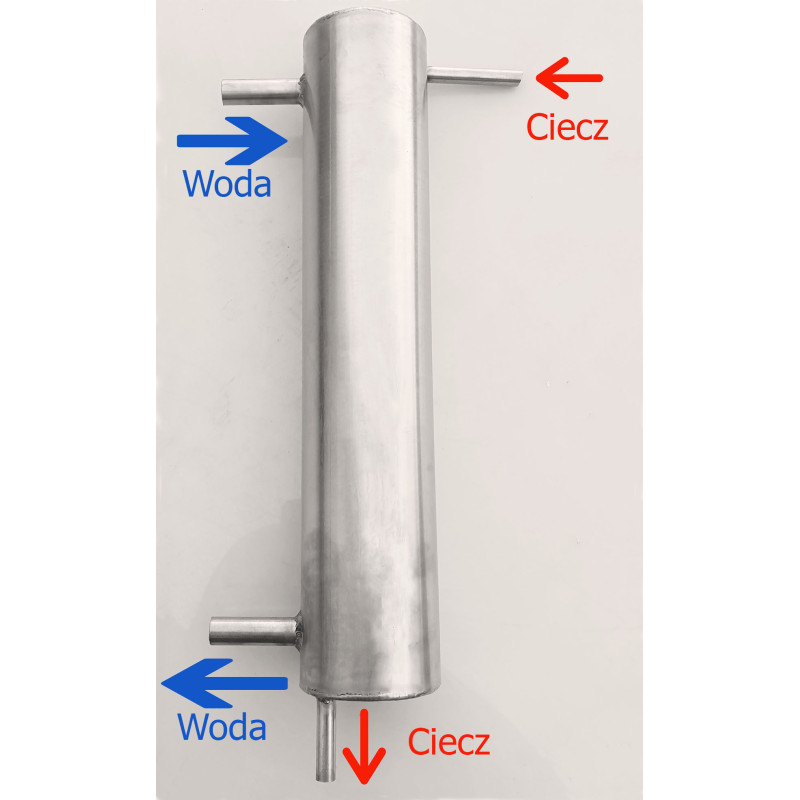 CHŁODNICA wężownica spirala 8 mm bimber Destylator Chłodnica do destylatora z rury nierdzewnej kwasoodpornej 60,3 mm. Chłodnica destylacyjna z rury nierdzewnej kwasoodpornej 60,3 mm , w środku chłodnicy zamieszczona jest spirala nawinięta z 3 metrów rury fi 8 mm.