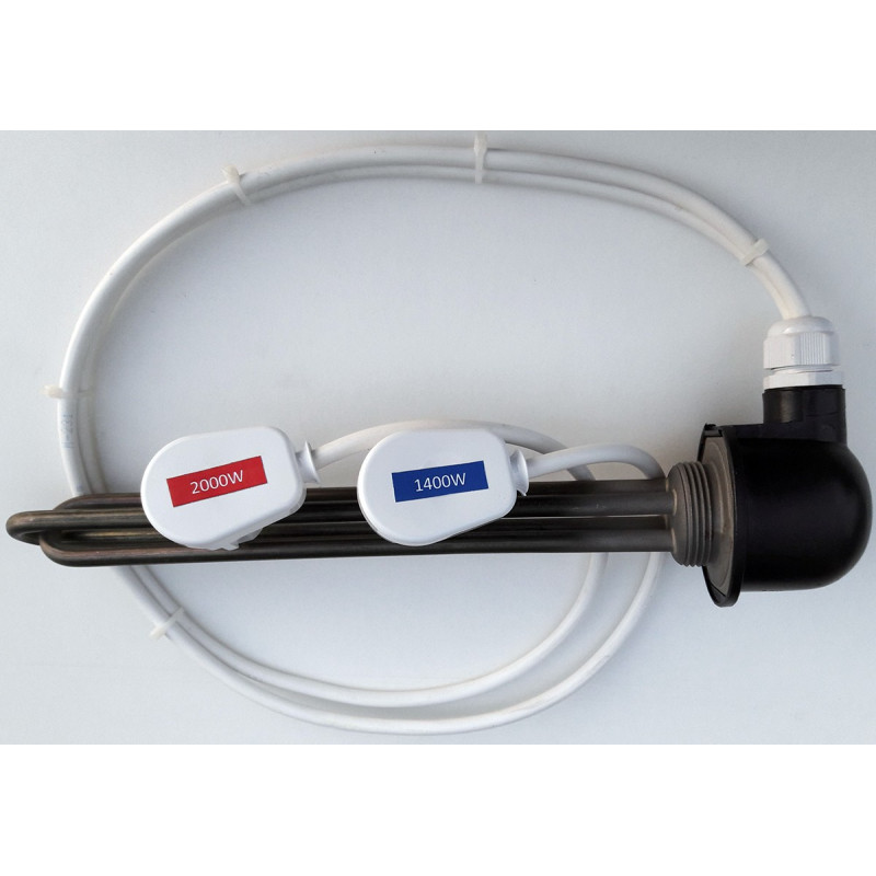 Podwójna grzałka kwasoodporna nierdzewna do destylatora 1400 + 2000 W 5/4" 230V z osłoną i przewodem.