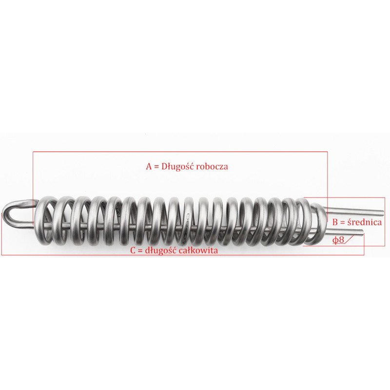 - (A) długość robocza spirali ok 270 mm (na życzenie klienta po uzgodnieniu możemy wykonać inna długość),